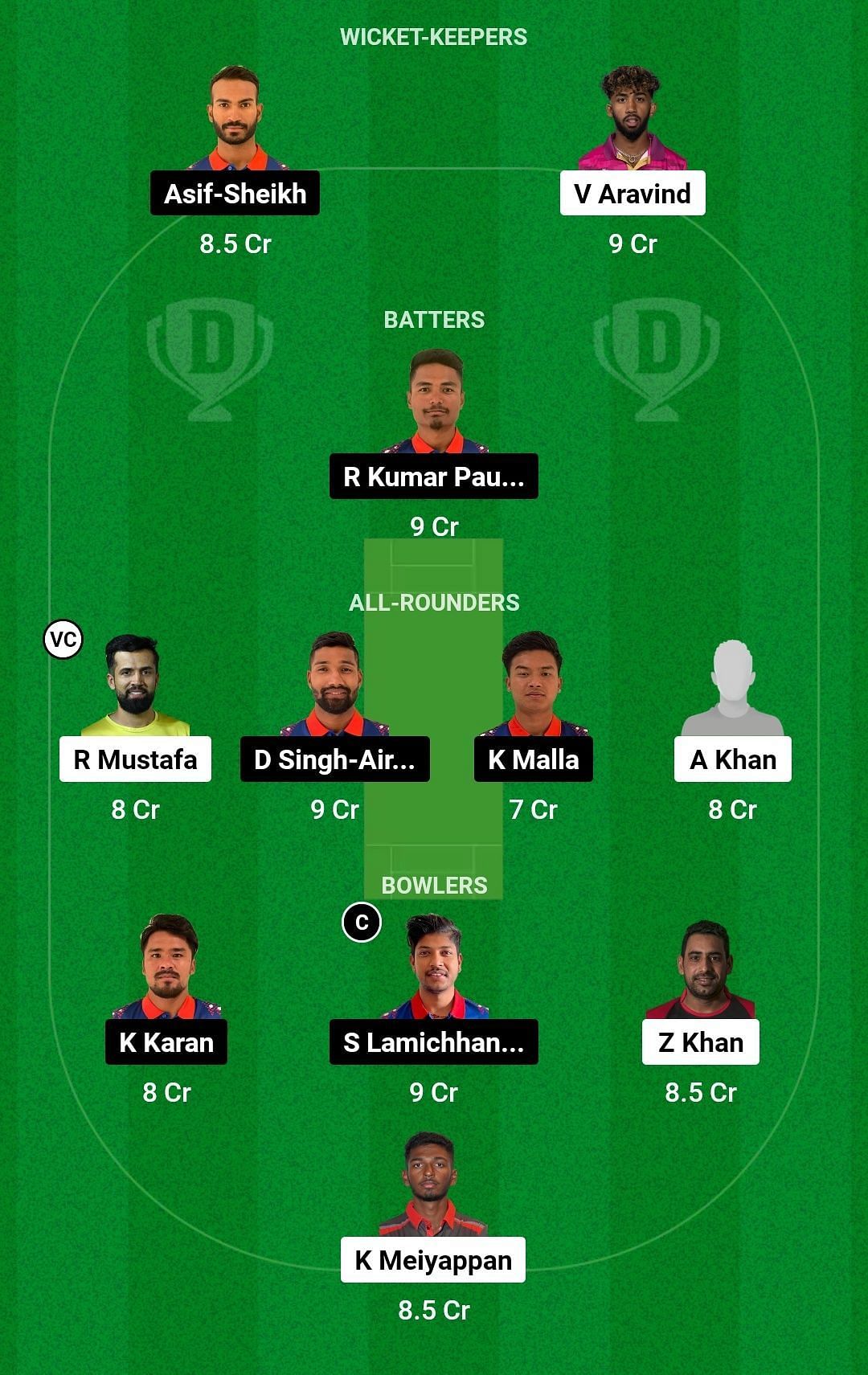 Bowlers: Karan KC, Sandeep Lamichhane, Zahoor Khan, Karthik Meiyappan