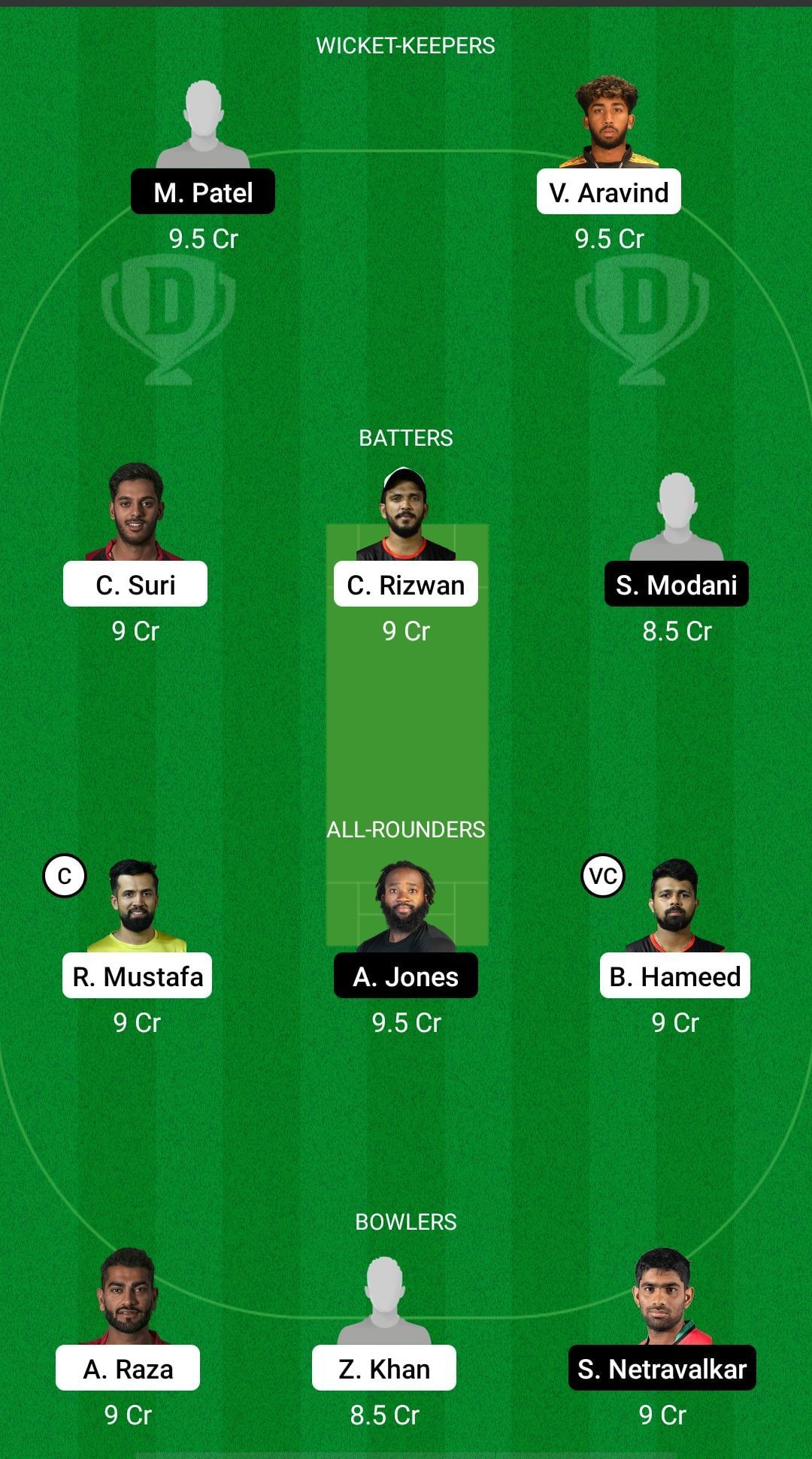 Fantasy Suggestion #1: Monank Patel, Vriitya Aravind, Chirag Suri, Chundangapoyil Puthiyapurayil Rizwan, Sushant Modani, Rohan Mustafa, Basil Hameed, Aaron Jones, Saurabh Netravalkar, Ahmed Raza, Zahoor Khan.
