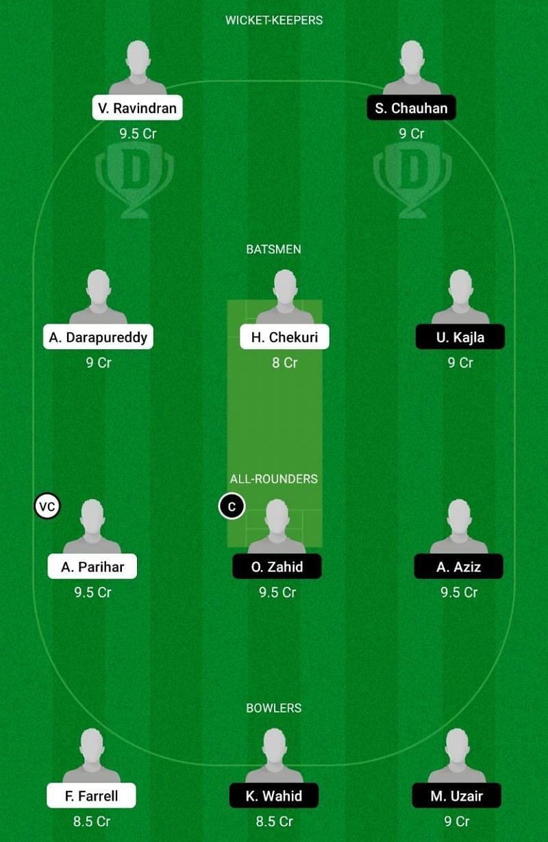 Fantasy Suggestion #1: Vinoth Ravindran, Sachin Chauhan, Ashrith Darapureddy, Hrishi Chekuri, Usama Kajla, Amit Parihar, Omer Zahid, Amjad Aziz, Francis Farrell, Kamran Wahid, Muhammad Uzair
