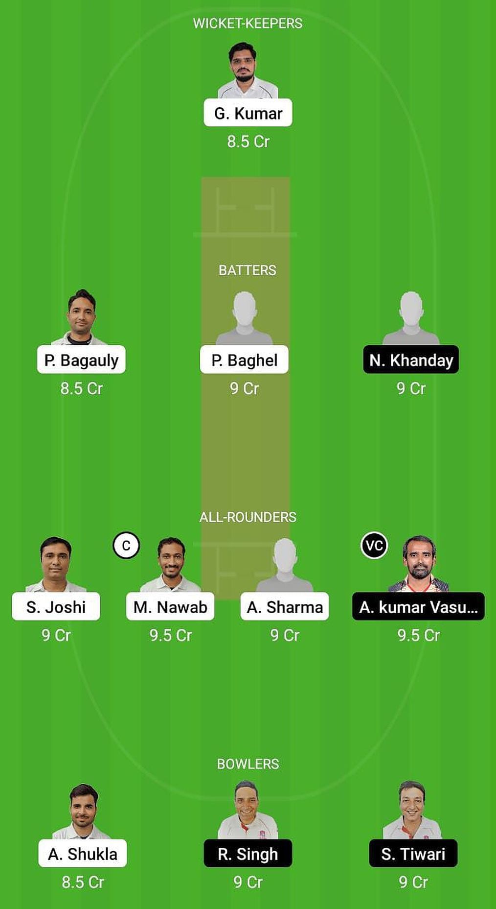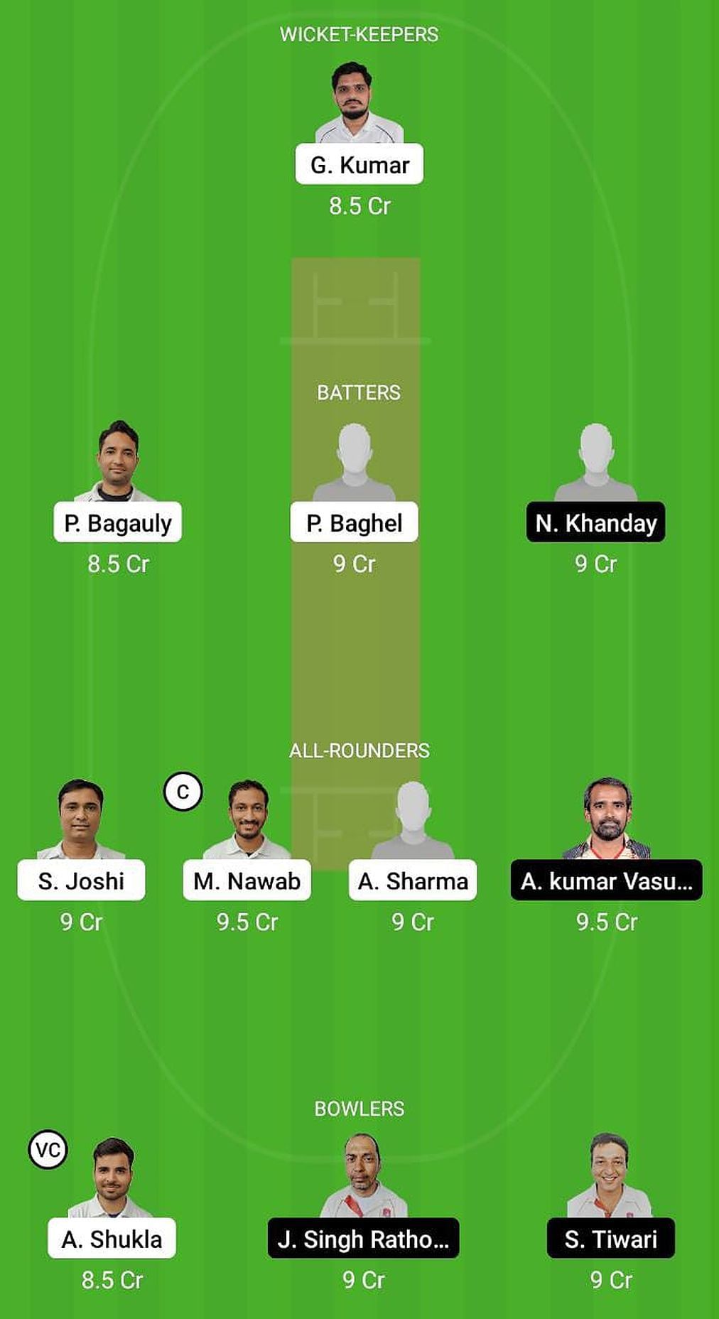 Fantasy suggestion #2: Ghanshyam Kumar, Pramod Bagauly, Piyushsingh Baghel, Shyamal Joshi, Mustafa Nawab, Ayush Sharma, Arun Vasudevan, Arpan Shukla, Sandeep Tiwari, Noor Khanday, Raghvenda Singh