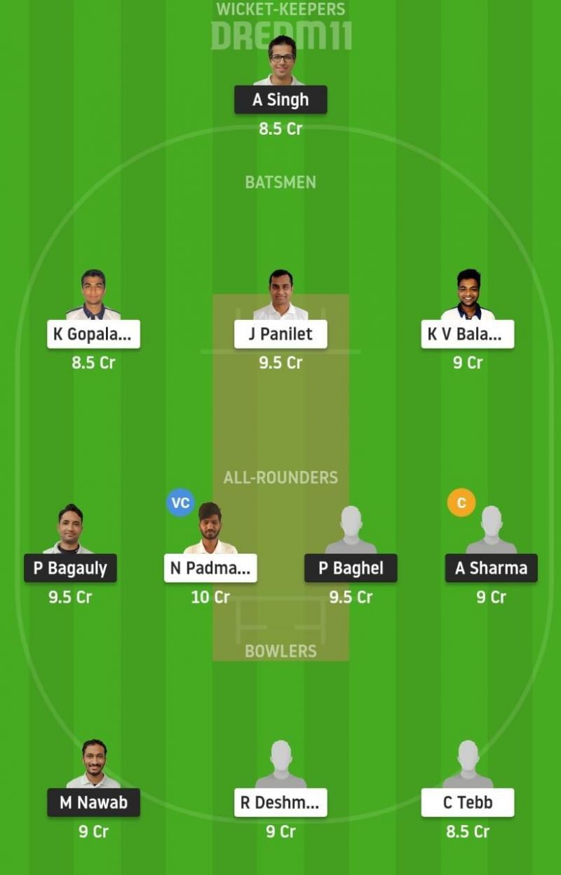 Fantasy Suggestion #1: A Singh, K V Balakrishnan, J Panilet, K Gopalakrishnan, A Sharma, N Padmaraju, P Baghel, P Bagauly, M Nawab, R Deshmoyni, C Tebb