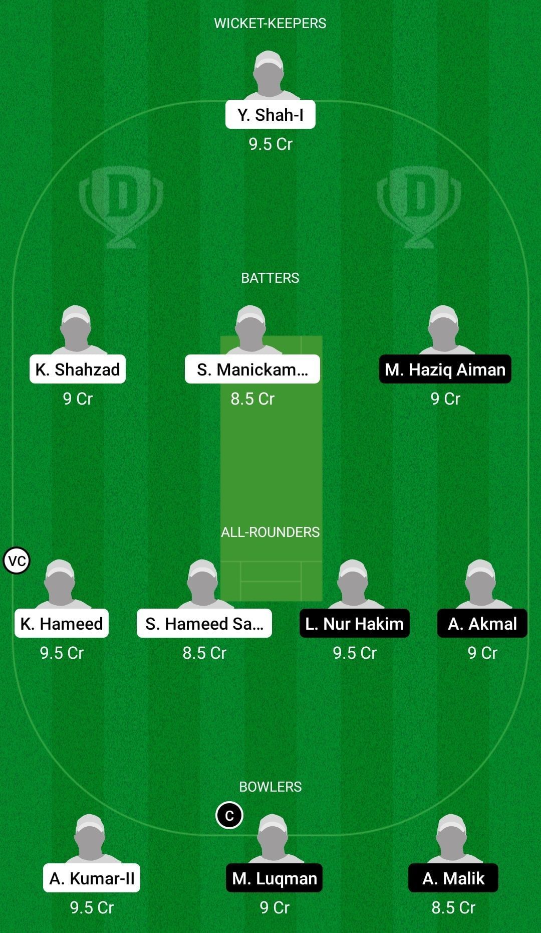 Fantasy Suggestion #2: Yasir Shah-I, Kashif Shahzad, Senthil Manickam Rajendran, Mohammad Haziq Aiman, Kamran Hameed, Shahul Hameed Sahib, Lokman Nur Hakim Sahar, Akmal Ahmad, Amit Kumar-II, Muhammad Luqman Hakimi, Akram Malik.