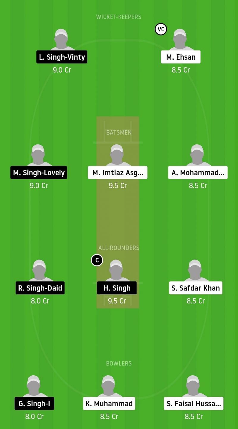 Fantasy Suggestion #1: Lakhvir Singh Vinty, Muhammad Ehsan, Manjinder Singh Lovely, Mirza Imtiaz Asghar, Aziz Mohammad, Randip Singh Daid, Happy Singh, Sumair Safdar Khan, Gurvinder Singh, Kamran Muhammad, Syed Faisal Hussain.