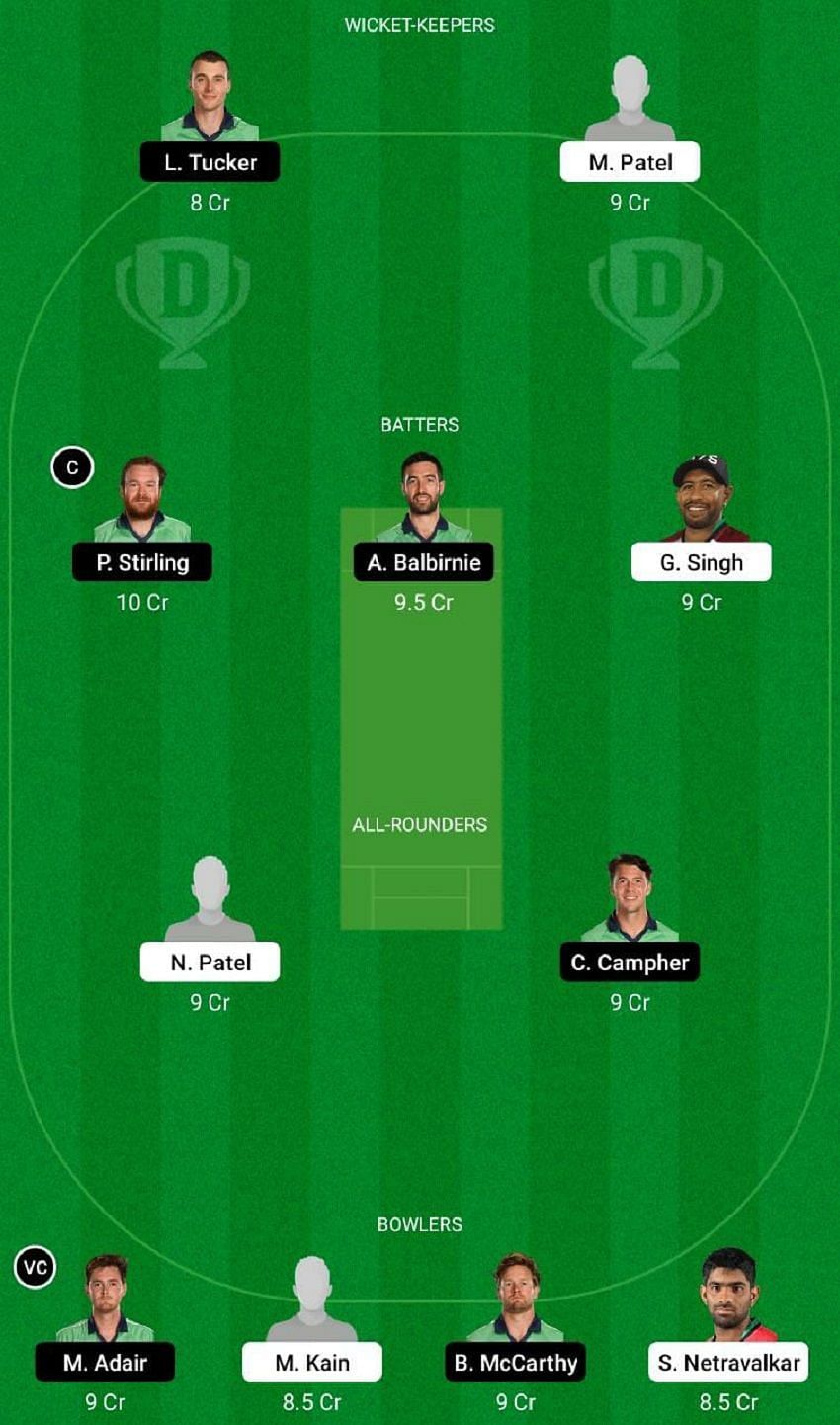 Fantasy Suggestion #1: Lorcan Tucker, Monank Patel, Paul Stirling, Andy Balbirnie, Gajanand Singh, Nisarg Patel, Curtis Campher, Mark Adair, Marty Kain, Barry McCarthy and Saurabh Netravalkar