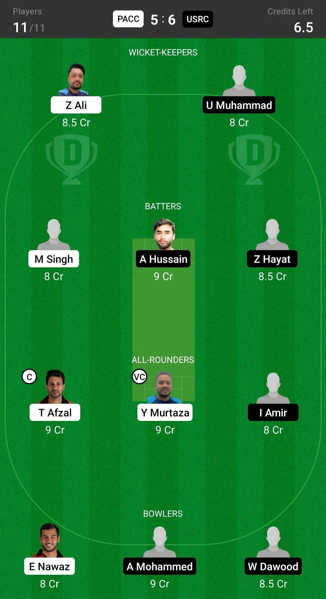 United Services Recreation Club vs Pakistan Association Cricket Club Dream11 Prediction Today, Grand League