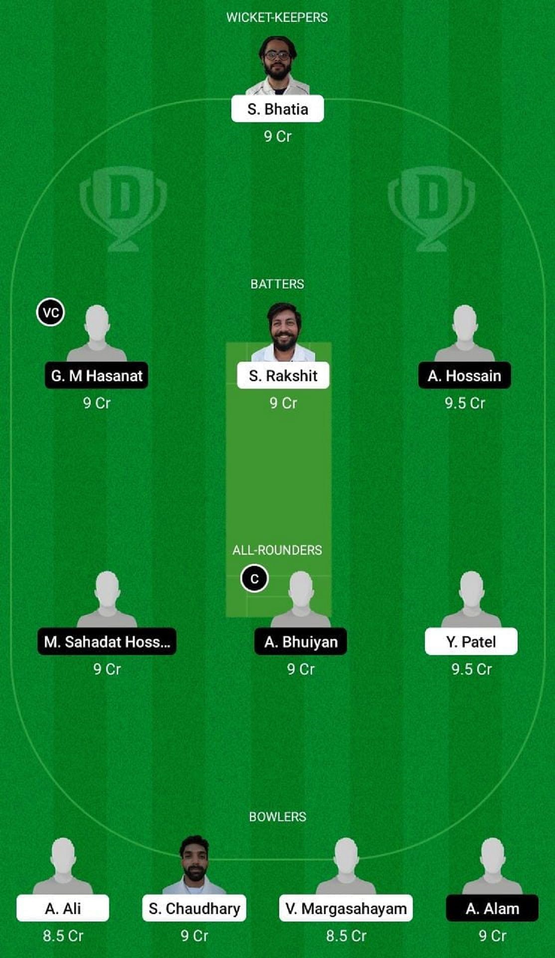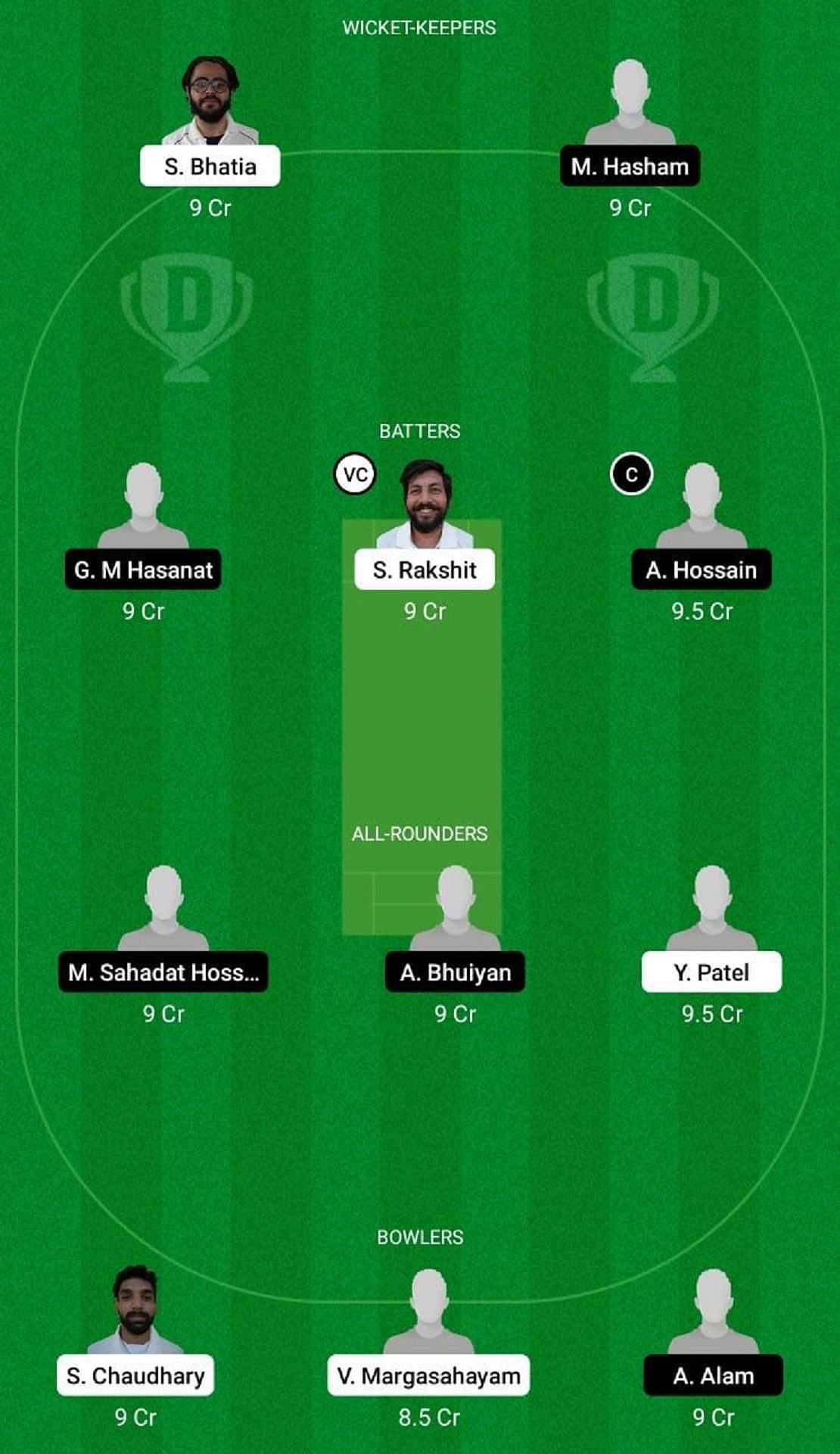 Fantasy Suggestion #1: S Bhatia, A Hossain, G M Hasanat, S Rakshit, A Bhuiyan, M Hossain Sagor, Y Patel, A Alam, A Ali, S Chaudhary, V Margasahayam