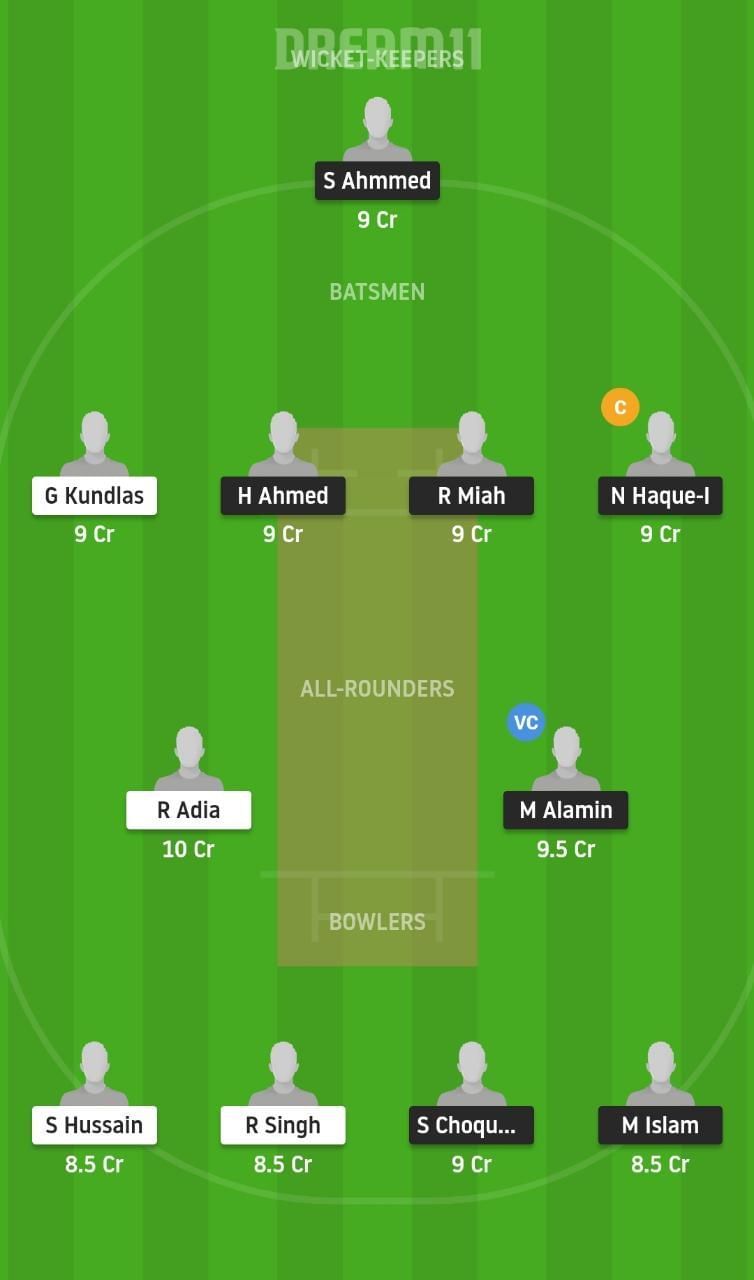 Fantasy Suggestion #2: S Ahmmed, G Kundlas, H Ahmed, R Miah, N Haque, R Adia, M Alamin, M Nitol, S Hussain, R Singh, S Choquder.