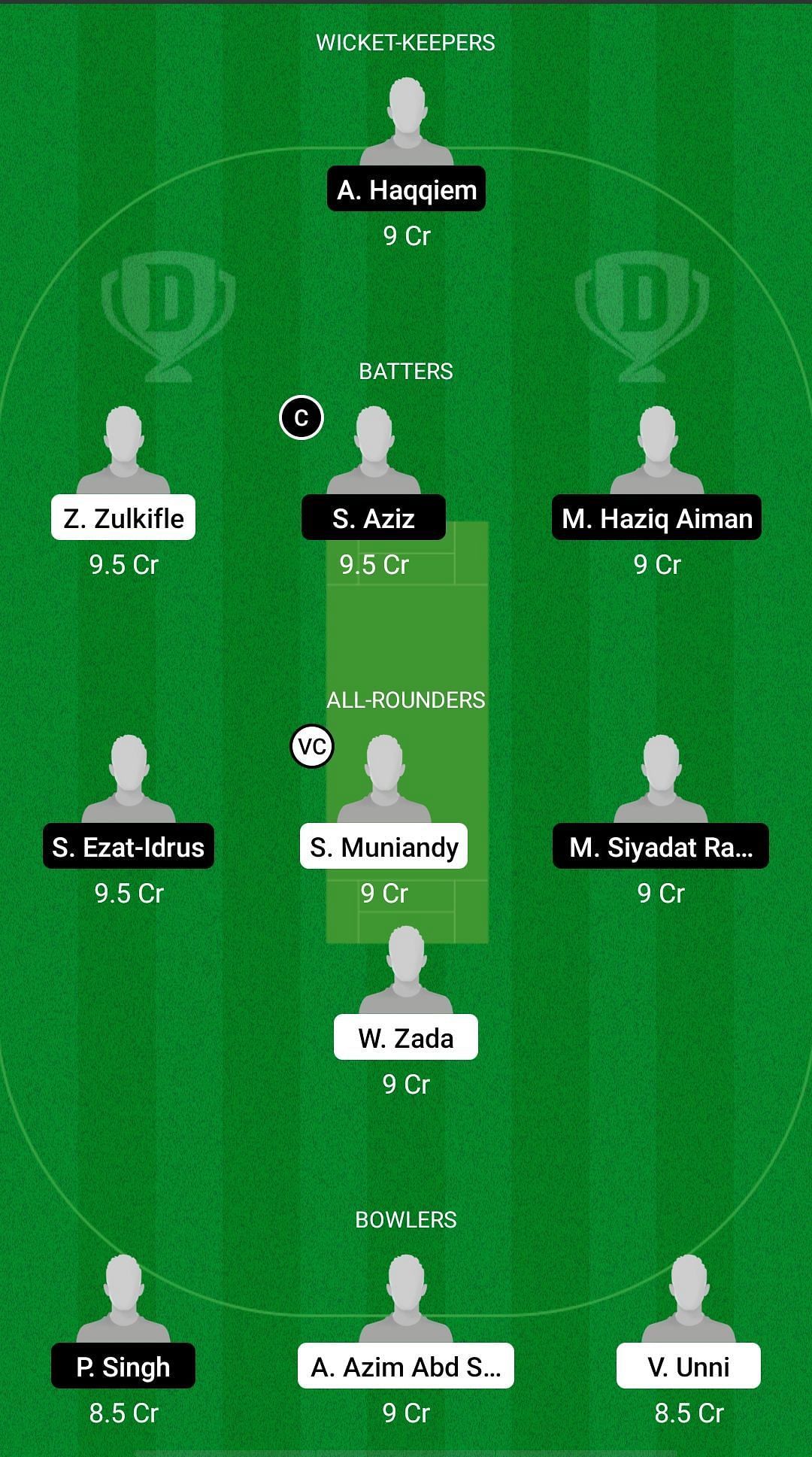 Captain: Syed Aziz. Vice-captain: Sharvin Muniandy.
