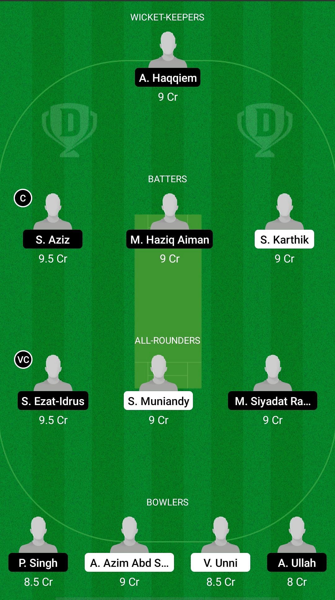 Fantasy Suggestion #2: Ainool Haqqiem, Syed Aziz, Mohammad Haziq Aiman, Sidarth Karthik, Syazrul Ezat Idrus, Sharvin Muniandy, Mohammad Siyadat Ramli, Pavandeep Singh, Amir Azim Abd Shukor, Vijay Unni, Arif Ullah.