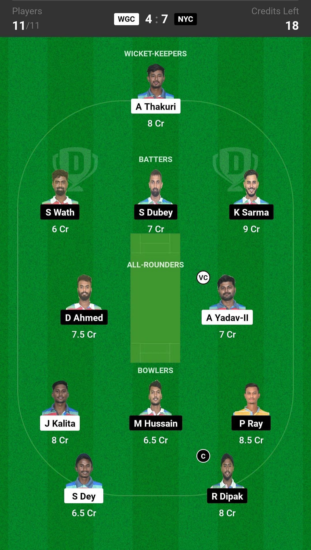 West Guwahati Club vs 91 Yards Club Dream11 Prediction Today, Grand League
