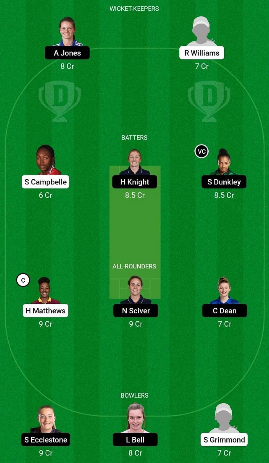 Wicketkeepers: Rashada Williams, Amy Jones