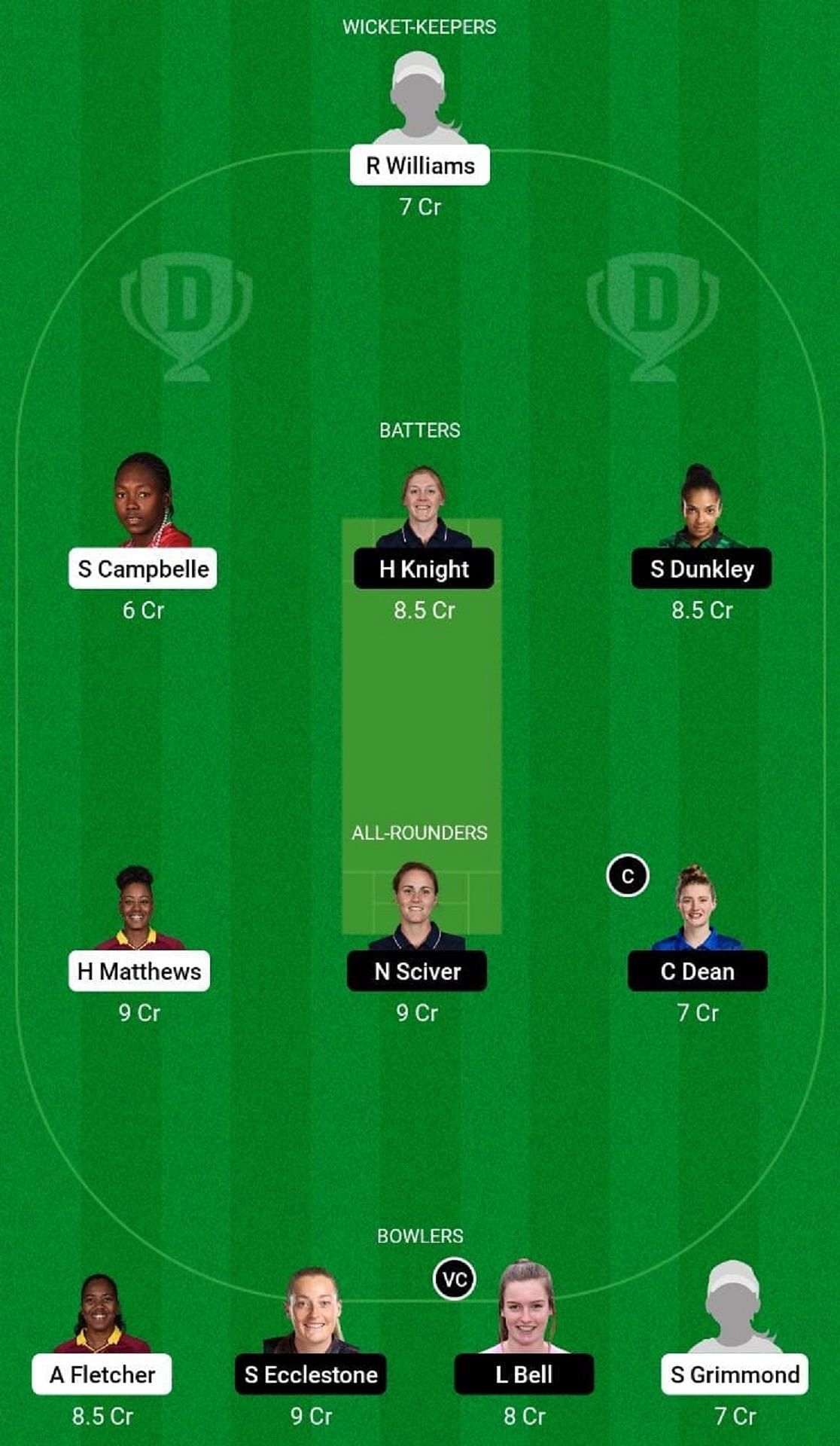 Charlie Dean has been in outrageous form with the ball and could prove to be the X-factor in your WI-W vs EN-W Dream11 fantasy team.