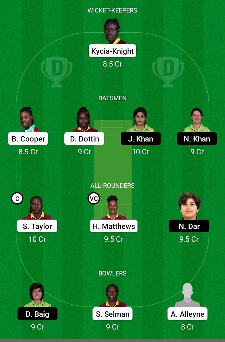 Fantasy Suggestion #1: Kycia Knight, Britney Cooper, Deandra Dottin, Nahida Khan, Javeria Khan, Stafanie Taylor, Hayley Matthews, Nida Dar, Shakera Selman, Diana Baig, Aaliyah Alleyne.