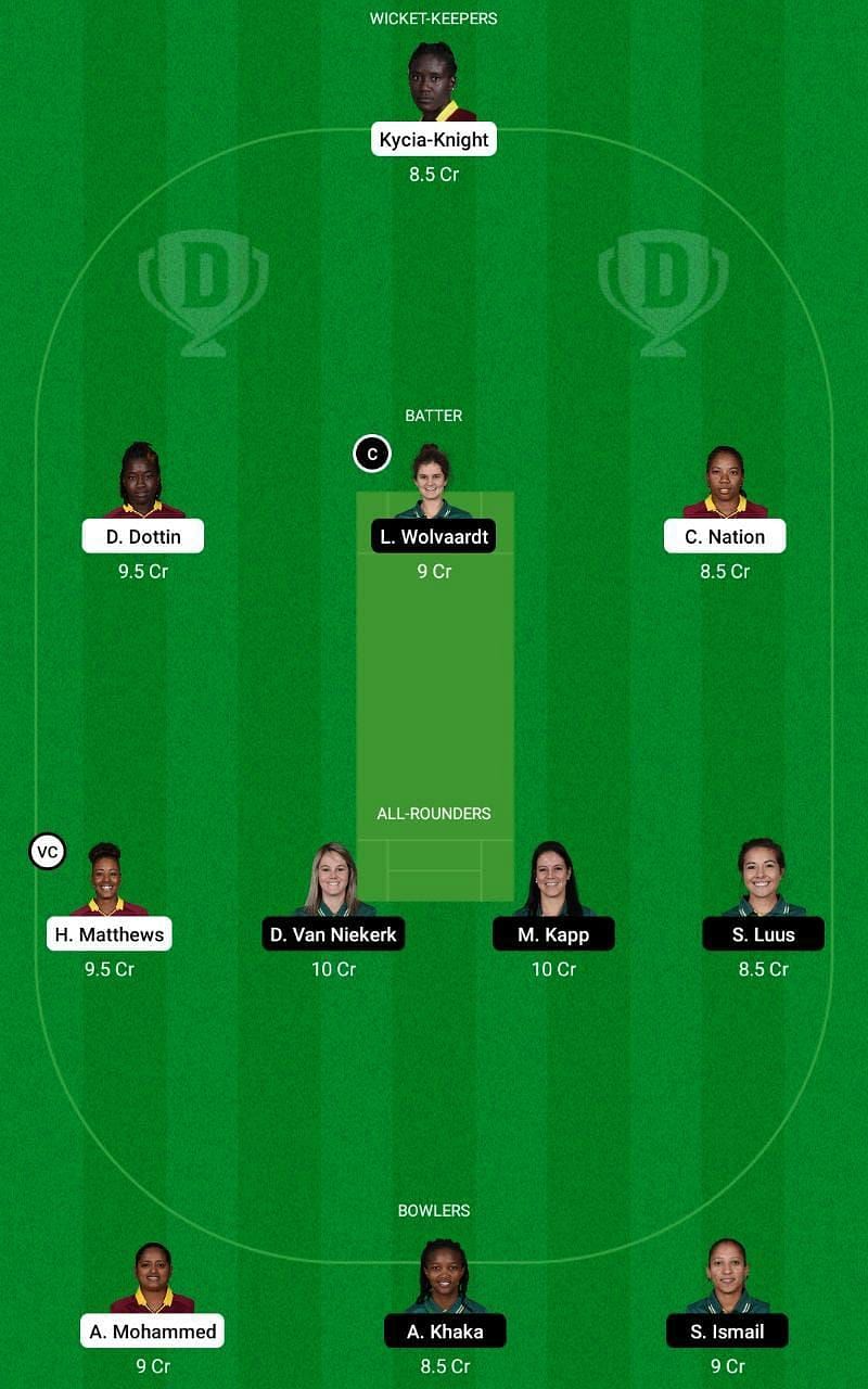 Fantasy Suggestion #1: Kycia Knight, Laura Wolvaardt, Deandra Dottin, Chedean Nation, Dane van Niekerk, Marizanne Kapp, Sune Luus, Hayley Matthews, Ayabonga Khaka, Shabnim Ismail and Anisa Mohammed