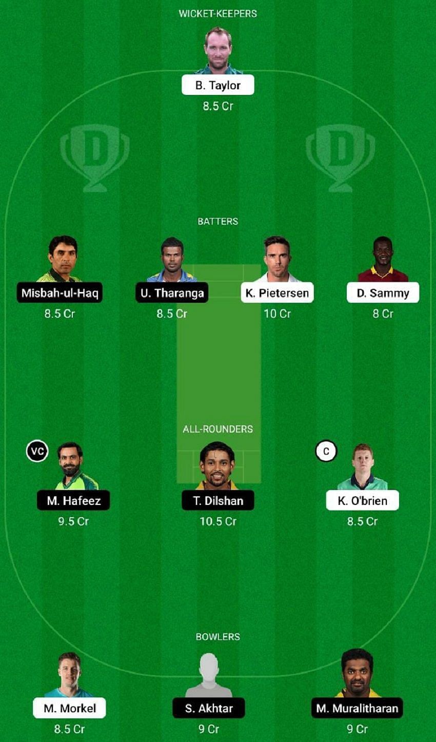 Fantasy Suggestion #1: Brendan Taylor, Misbah ul Haq, Upul Tharanga, Kevin Pietersen, Daren Sammy, Tillakaratne Dilshan, Mohammad Hafeez, Kevin O'Brien, Morne Morkel, Shoaib Akhtar and Muttiah Muralitharan