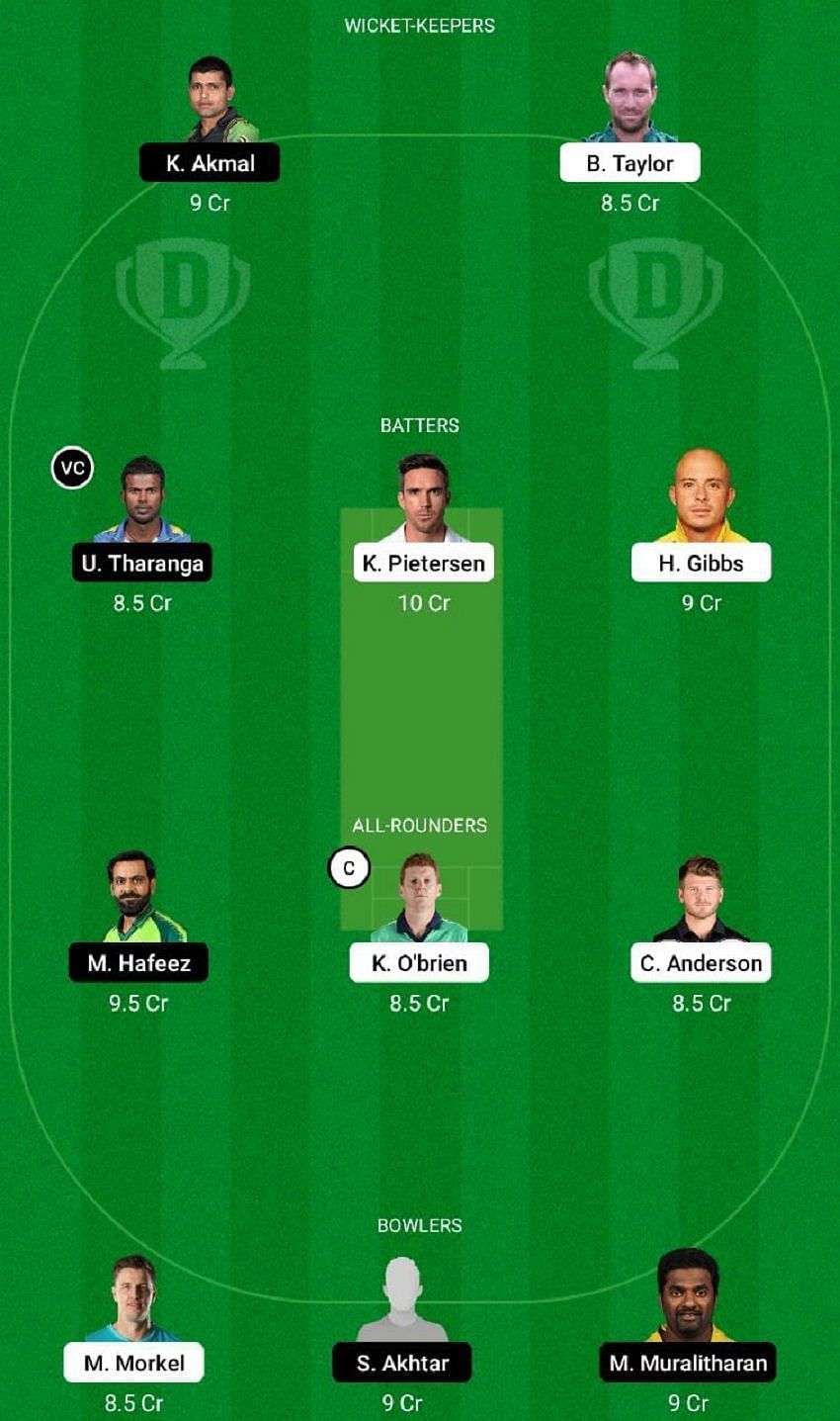 Fantasy Suggestion #2: Brendan Taylor, Kamran Akmal, Upul Tharanga, Kevin Pietersen, Herschelle Gibbs, Tillakaratne Dilshan, Mohammad Hafeez, Kevin O'Brien, Morne Morkel, Shoaib Akhtar and Muttiah Muralitharan