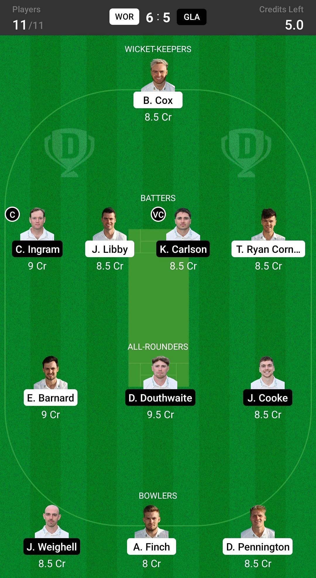 D Douthwaite and E Barnard are the best all-rounder choices for the Dream11 team as they are batting in the top order and also completing their quota of overs. J Cooke is another good pick for today's Dream11 team.