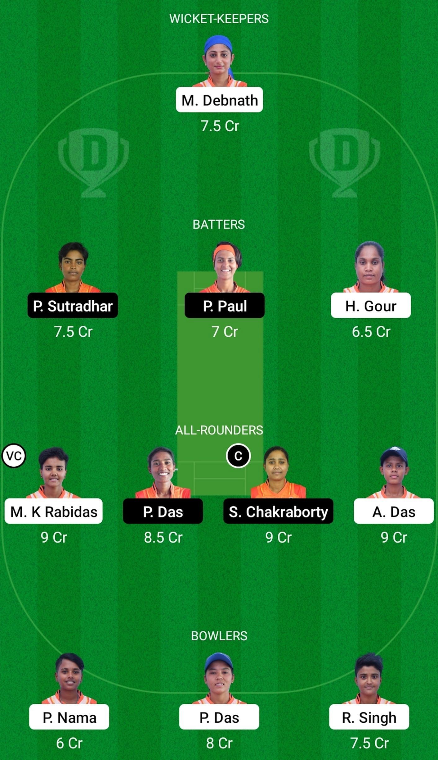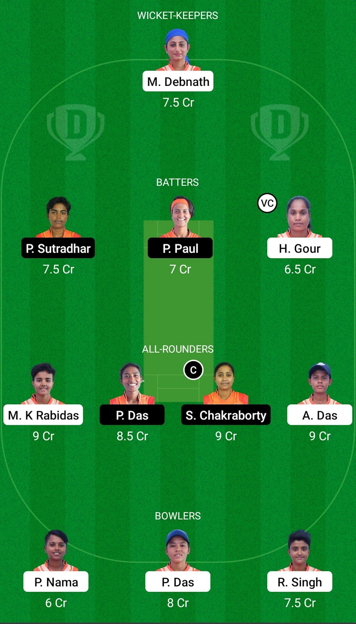 Bowlers: Priyanka Das, Rumpa Singh, Payal Nama