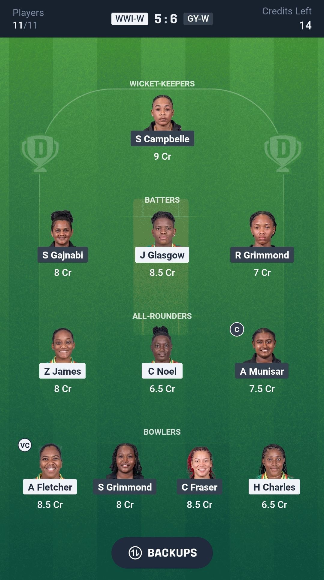 Ahead of this exciting match, here's all you need to know about the WWI-W vs GY-W Dream11 Prediction, today's playing 11s, fantasy cricket tips, best player picks, and the pitch report.