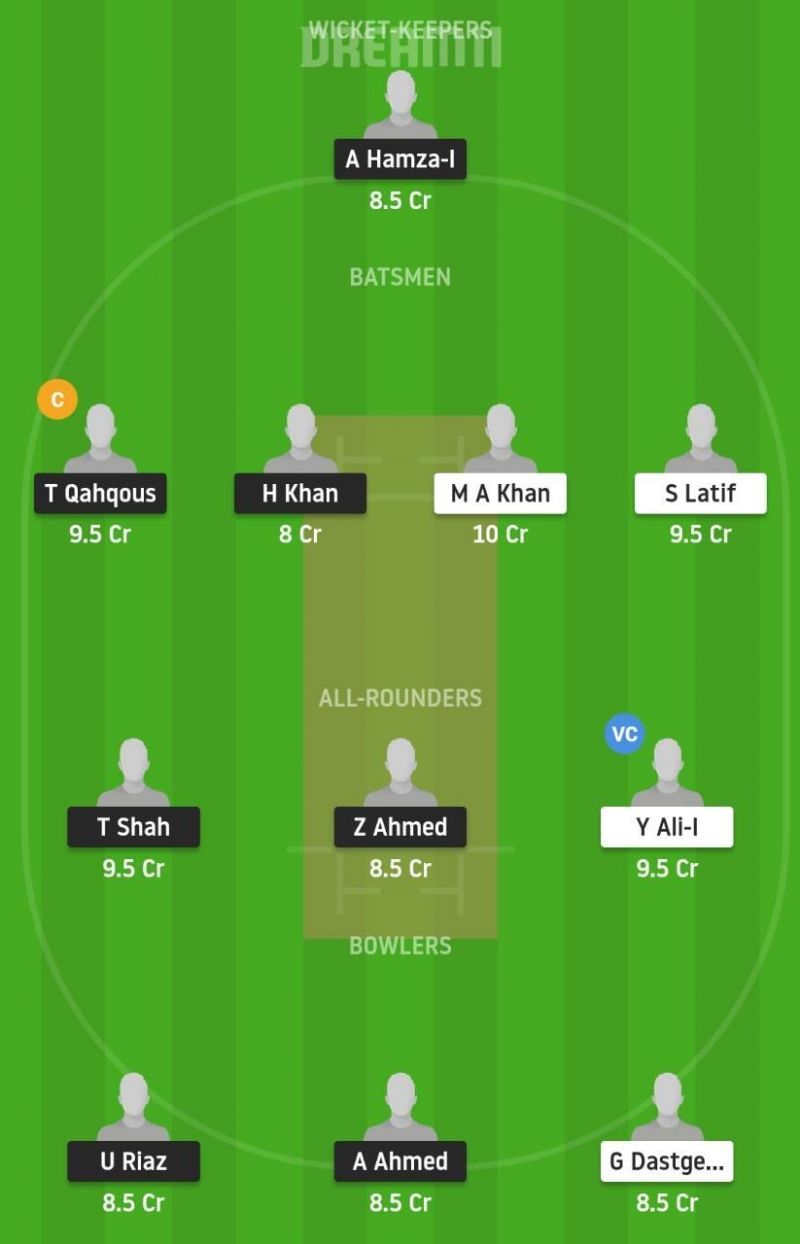 Fantasy Suggestion #1: Amir Hamza, Tabish Qahquos, Hamza Khan, Saqib Latif, Muhammad Armghan Khan, Yasir Ali, Tanveer Shah, Zubair Ahmed, Umar Riaz, Ali Ahmed, Ghulam Dastgeer
