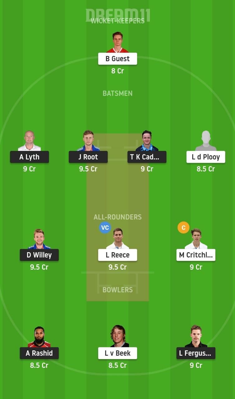 Fantasy Suggestion #1: Brooke Guest, Leus de Plooy, Tom Kohler Cadmore, Adam Lyth, Joe Root, Luis Reece, Matt Critchley, David Willey, Logan van Beek, Lockie Ferguson, Adil Rashid