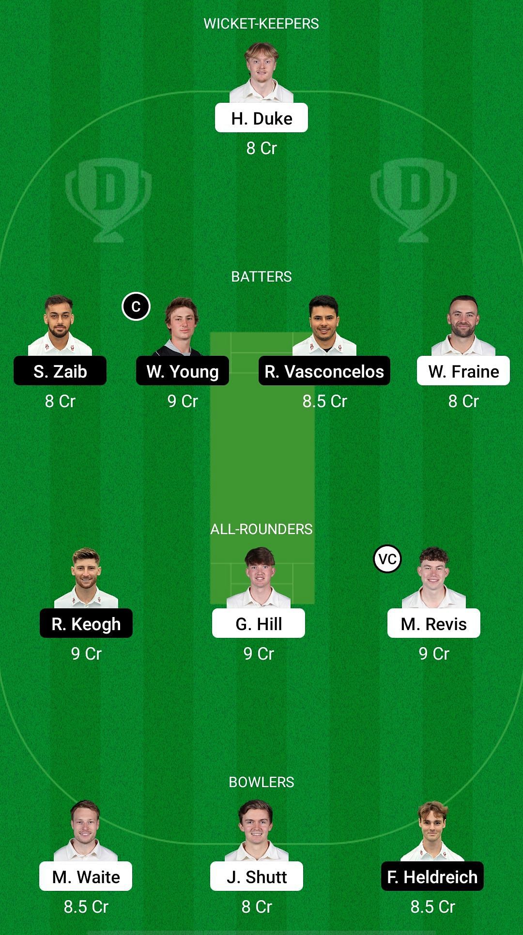 Will Young (C), RS Vasconcelos, LD McManus (WK), EN Gay, SA Zaib, RI Keogh, NL Buck, BD Glover, AK Russell, FJ Heldreich, RA Weatherall.