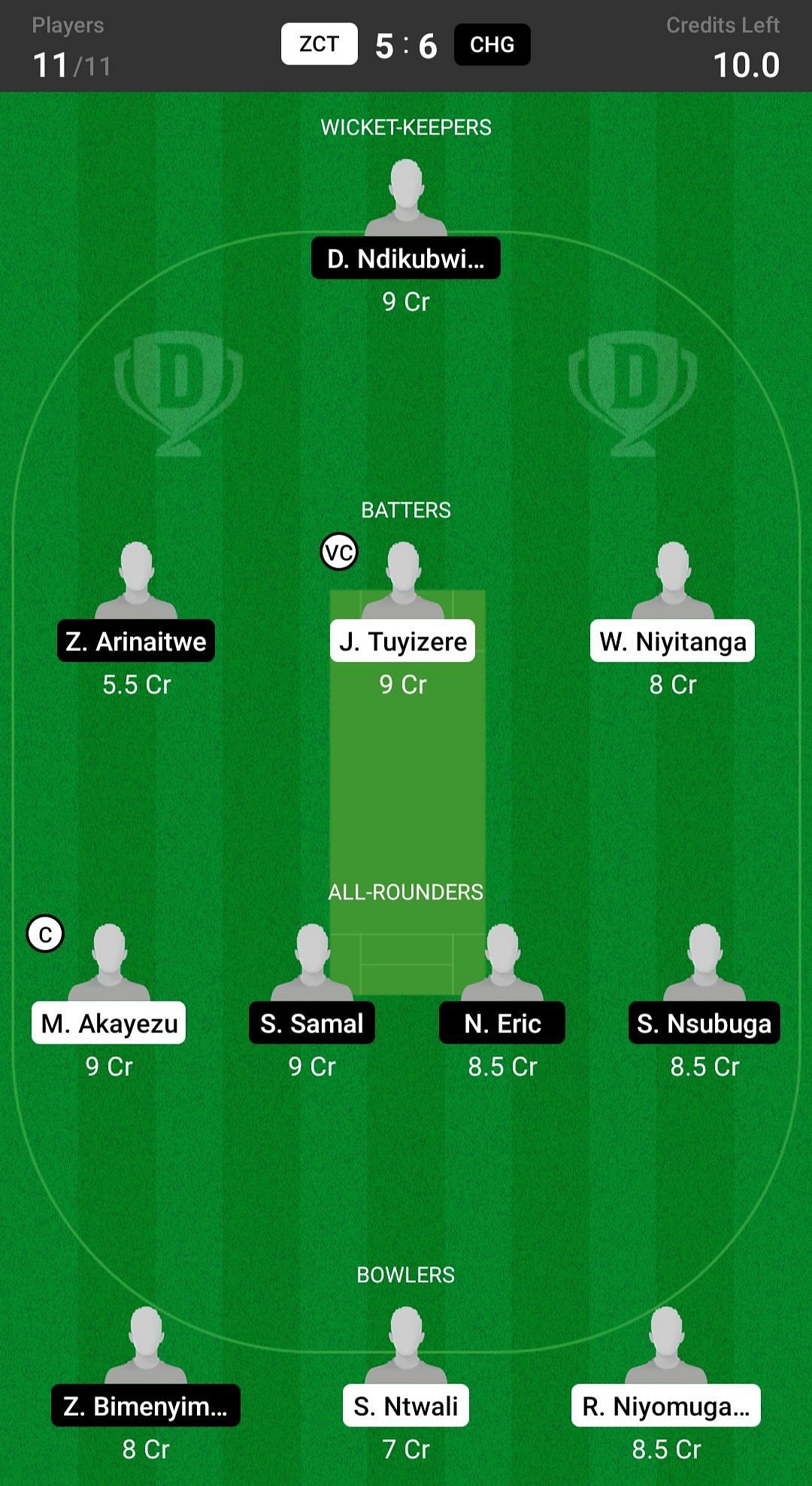 M Akayezu and S Samal are the best all-rounder picks for the Dream11 team as they are batting in the top order and also completing their quota of overs. N Eric is another good pick for today's Dream11 team.