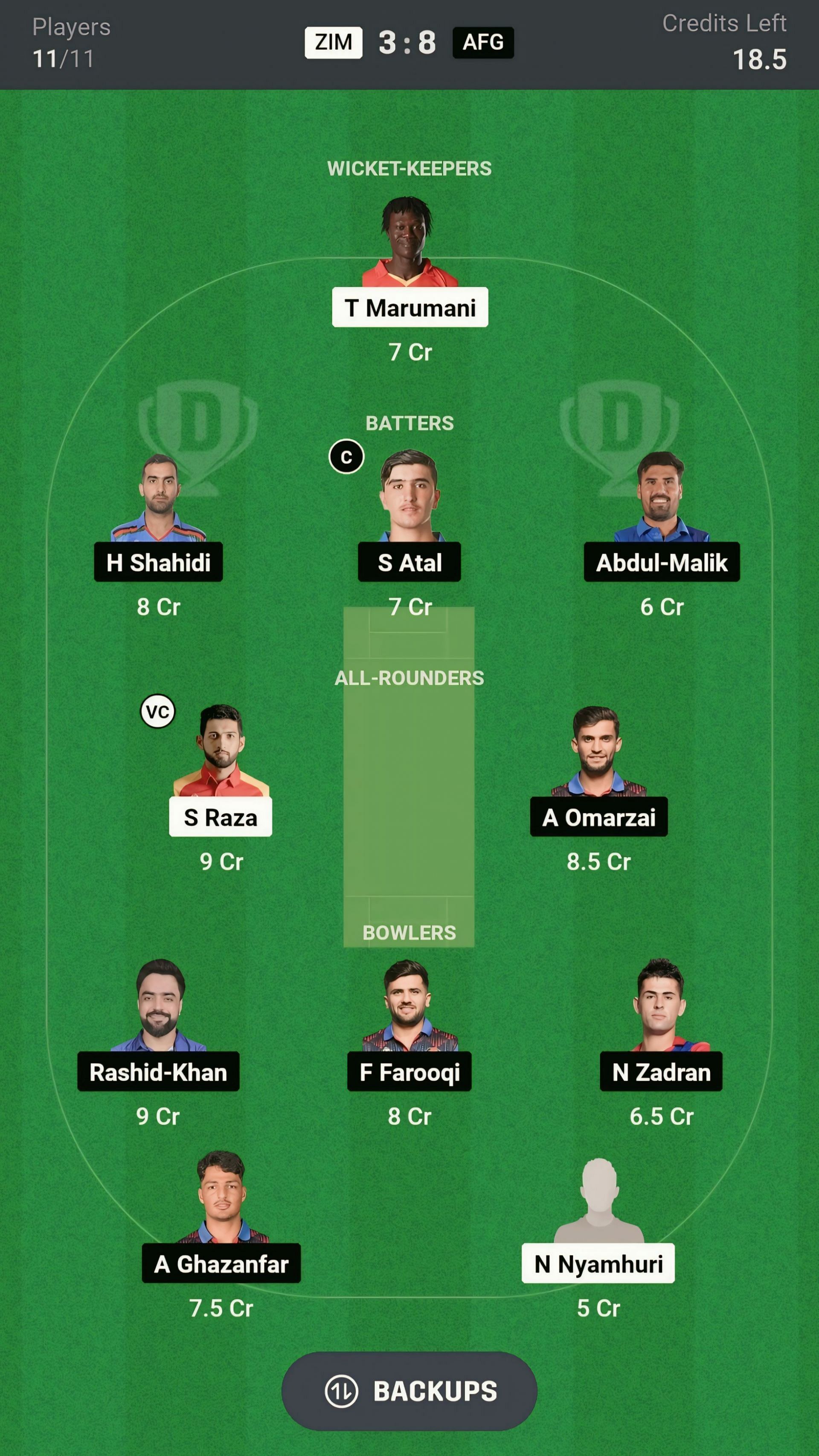 ZIM vs AFG match captain and vice-captain choices