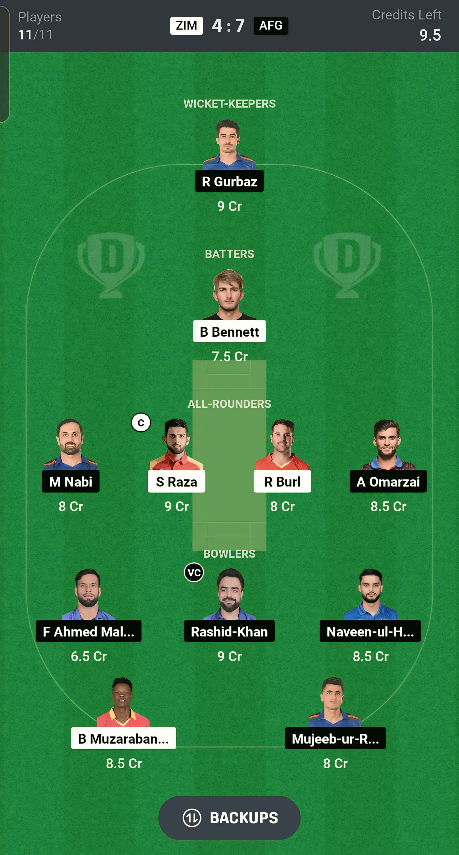 Zimbabwe vs Afghanistan Dream11 Prediction Today, Grand League
