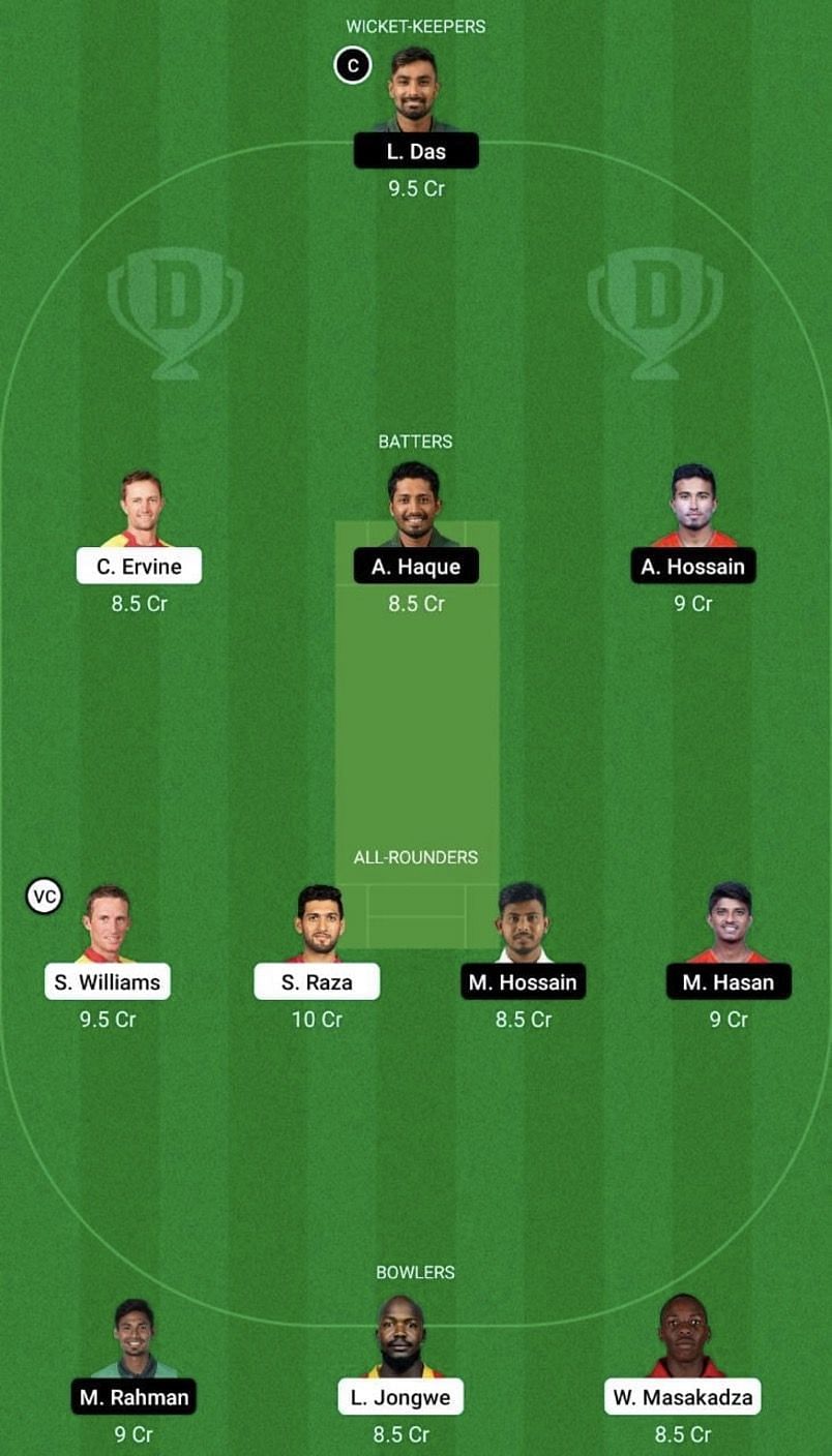 Fantasy Suggestion #1: Litton Das, Craig Ervine, Anamul Haque, Afif Hossain, Sean Williams, Sikandar Raza, Mosaddek Hossain, Mahedi Hasan, Mustafizur Rahman, Luke Jongwe and Wellington Masakadza