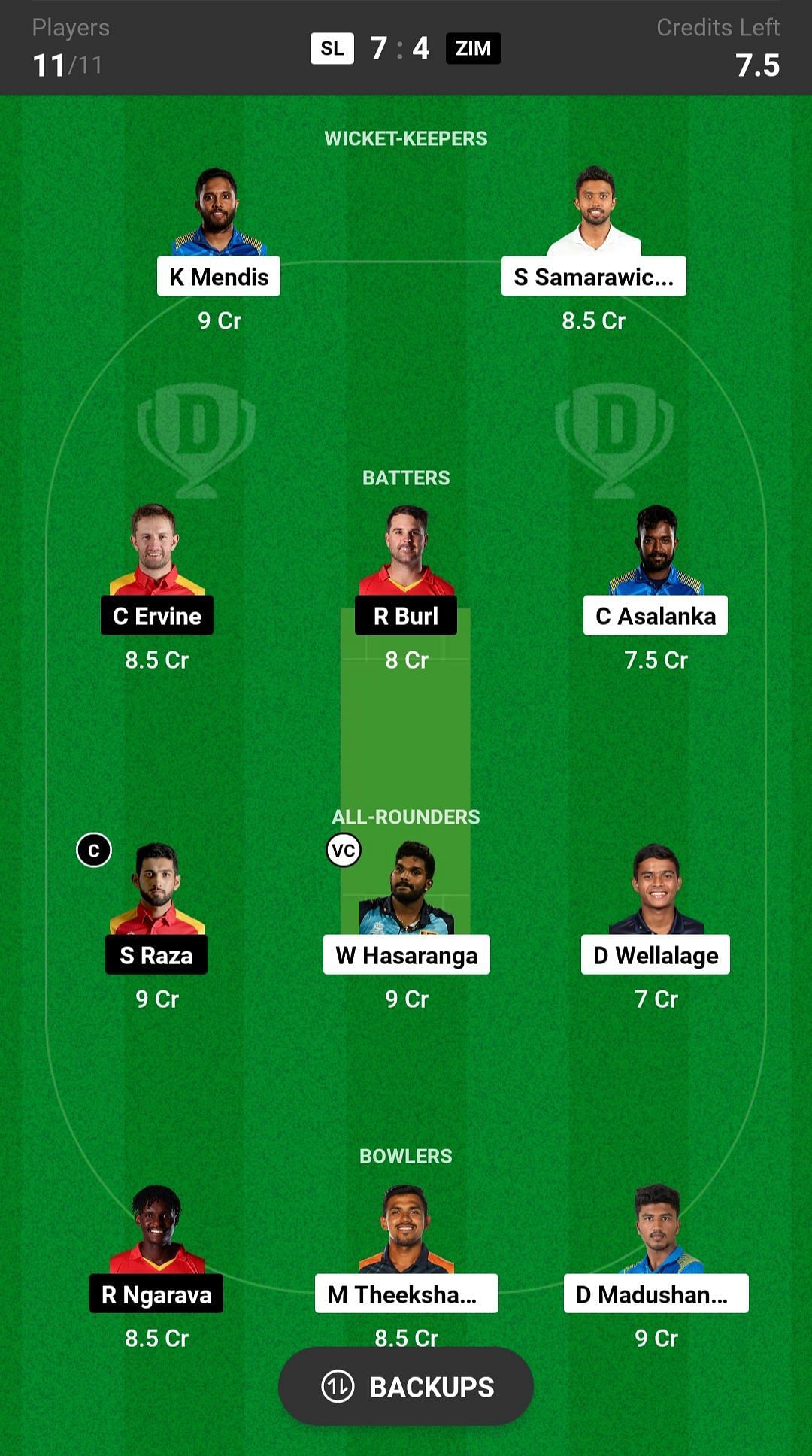 ZIM vs SL match captain and vice-captain choices