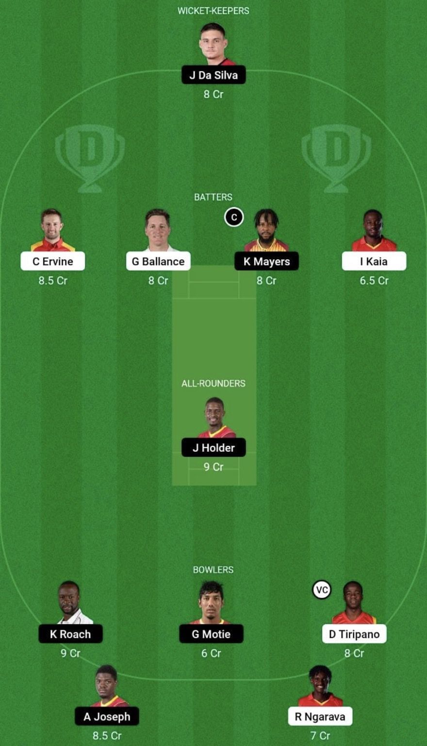 Bowlers: Kemar Roach, Gudakesh Motie, Donald Tiripano (vc), Alzarri Joseph, Richard Ngarava