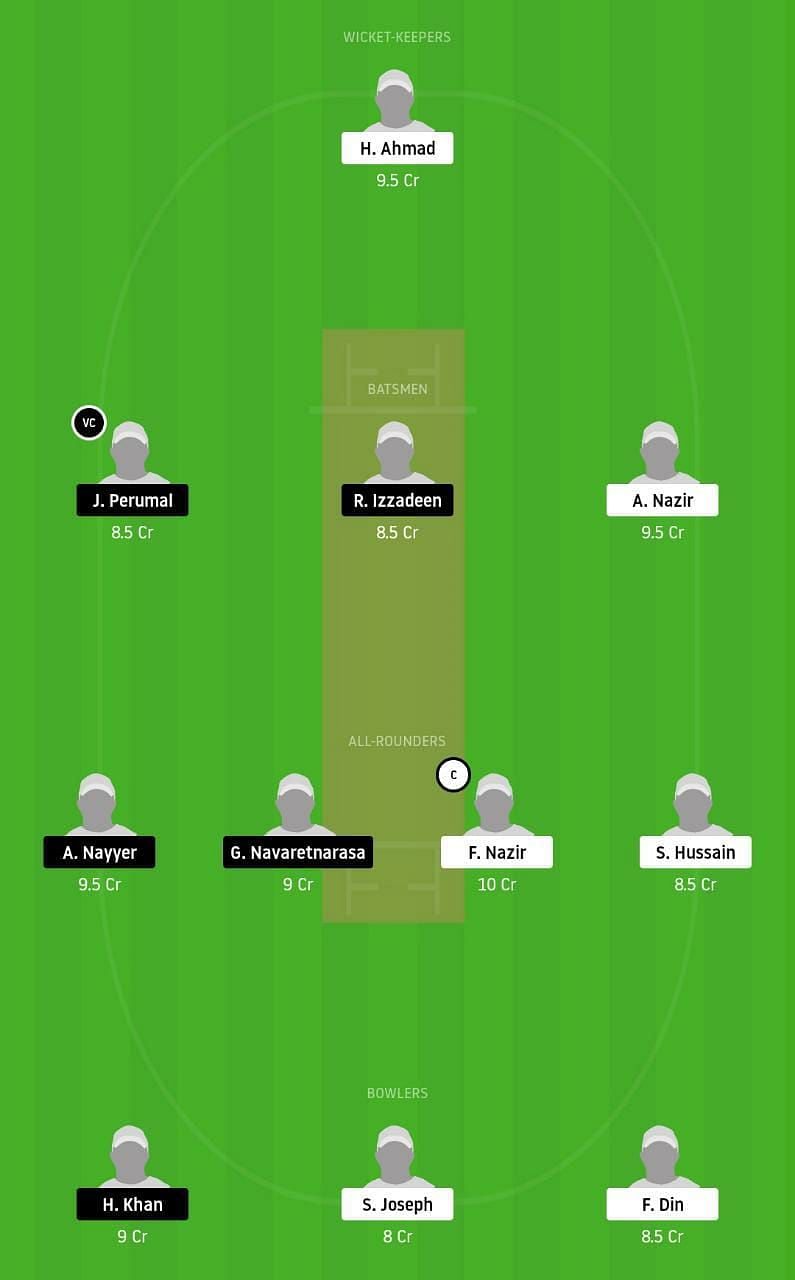 Fantasy Suggestion #1: H Ahmad, J Perumal, R Izzadeen, A Nazir, A Nayyer, G Navaretnsara, F Nazir, S Hussain, H Khan, S Joseph and F Din