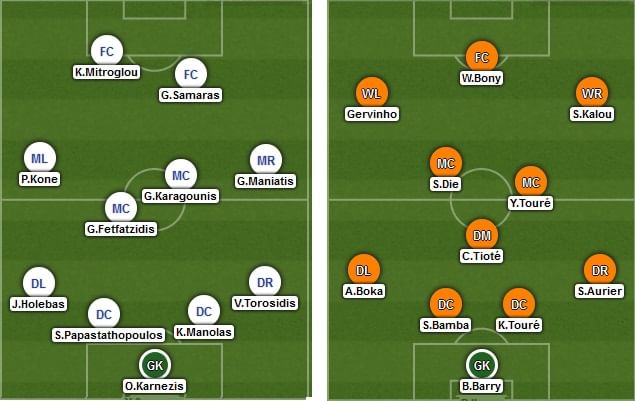 Ivory Coast (4-3-3): Barry; Aurier, K Touré, Bamba, Boka; Tioté, Serey Die; Kalou, Y Touré, Gervinho; Bony.