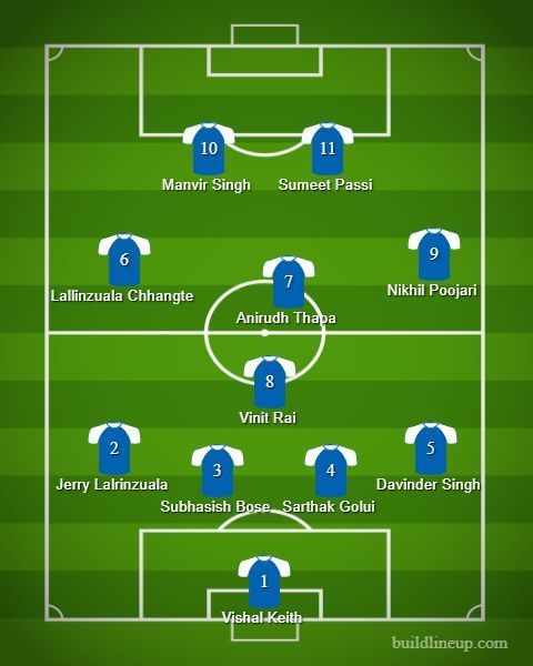 Manvir Singh will take his place as the other forward with Farukh Choudhury raring to get a go after the break. Anirudh Thapa will be an automatic choice in the centre of the midfield flanked by Vinit Rai from behind.