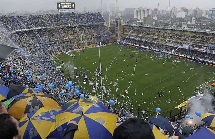 Translated in English as ‘the chocolate box’, La Bombonera is an oddly-shaped, distinctive masterpiece of football stadium architecture. In an attempt to save space, one stand stands vertical, comprised of seating areas stacked on top of one another, facing the other three, curved tiers. The acoustics are tremendous; the stadium is passion personified. La Bombonera exhales and inhales with each roar of the crowd and the ground is said to pulsate and tremble beneath the players’ feet. Last year a poll on the official website for the Copa Libertadores concluded that La Bombonera remains the most feared stadium in world football. The pitch (105m x 68m) is the smallest it can possibly be under FIFA regulations and this coupled with the electric fans of Boca Juniors is exactly why many label it ‘La Doce’ (the twelfth man) and why it cements its place on the list of the greatest stadia, not only in football but in the world.