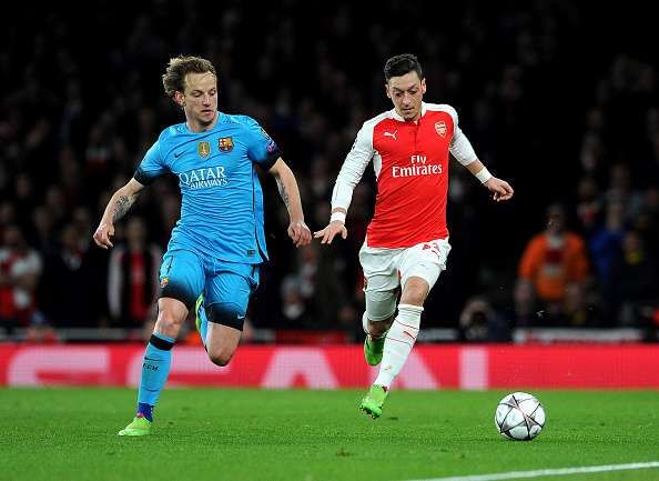 While they would have wound up on opposite sides a couple of times in the La Liga, Mesut Ozil and Ivan Rakitic have played together for Schalke in the 2007-08 Bundesliga season. While there were reports of a beef between the two that lead to Ozil's exit from the club, the Croat has maintained that they share a good relationship.