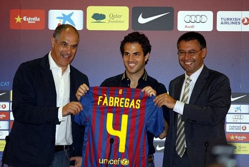 August 15th , 2010 was finally the day when Fabregas finally put on the blue and red of the Blaugrana, putting pen to paper on deal that cost the Spanish team £35 million.
