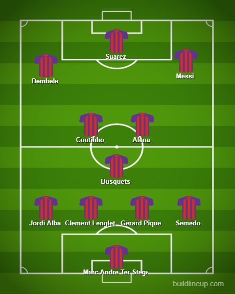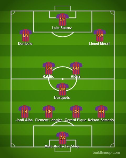 Alena comes into the team replacing Rakitic, Semedo slots in at right-back, and Dembele takes his place in the left-wing.