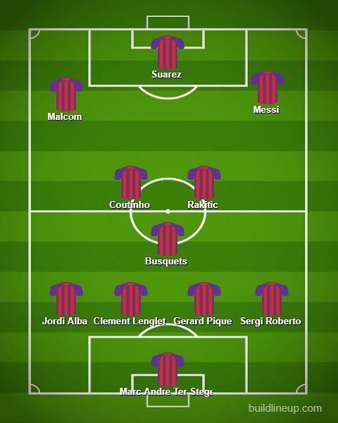 Malcom playing from the left side is basically a hunch to give Dembele. It is a risk to play a youngster out of position but it sounds better than Coutinho at left-wing, where he has not made any impact, doesn't have the pace to threaten the defenders, and is not a bit confident.