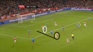 Seeing the challenges from Hull defenders, Ramsey sent in a short pass towards Monreal, who at the right moment brought out his foot and kept the ball in play.