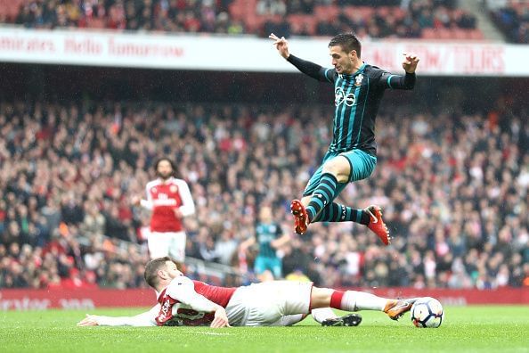Things got terribly out of hand in the final moments of stoppage time as Stephens seemed to lose his head and viciously stamp-out as well as drag the substitute Jack Wilshere to the ground by his neck. The Southampton man saw red almost instantly.