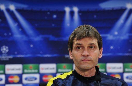 Barcelona coach Tito Vilanova gives a press conference after a training session at the Sports Center FC Barcelona Joan Gamper, near Barcelona on December 4. Vilanova faced cancer surgery Thursday and six weeks on the sidelines but vowed to return soon to the Spanish league leaders.