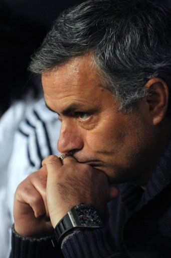 Real Madrid coach Jose Mourinho looks on before the Spanish league match against Malaga on December 22, 2012. Mourinho is under increasing pressure at Real after his side dropped 16 points behind La Liga leaders and fierce rivals Barcelona.