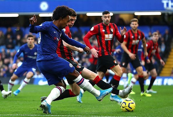 Chelsea partially cleared their lines from a corner, but after Jefferson Lerma's power header back goalwards, Gosling showed great improvisation and awareness to deftly flick an effort over Kepa Arrizabalaga and score, despite Cesar Azpilicueta's attempted clearance.