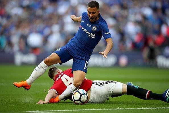 By the time Hazard made a superb run with the ball and was well past Phil Jones, the defender struggled to get goal side of the Blues forward. Jones had no choice but to risk a penalty when going for the tackle as Hazard prepared to pull the trigger.