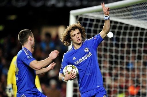 Chelsea‘s Brazilian defender David Luiz (R) celebrates scoring a penalty in the UEFA Champions League match against FC Nordsjaelland on December 5. The Blues routed Nordsjaelland 6-1 to secure a first victory under interim manager Rafael Benitez, but it wasn’t enough to book a place in the last 16 as Chelsea became the first European champions to bow out at the group stage.