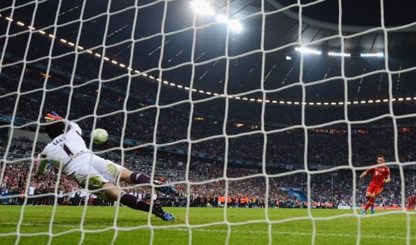 MUNICH, GERMANY – MAY 19: Petr Cech of Chelsea saves a penalty from Ivica Olic of FC Bayern Muenchen in the shoot out past during UEFA Champions League Final between FC Bayern Muenchen and Chelsea at the Fussball Arena München on May 19, 2012 in Munich, Germany. (Photo by Mike Hewitt/Getty Images)