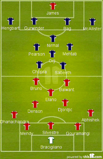 David James has said that he has a full squad of 29 players to choose from, and that each of his players are in good shape and in the fray for selection. Kerala played a diamond in midfield in their first game, and that is unlikely to change, given that they put up a reasonably good performance, and there is no reason why James has to tinker with that. One possible change in the eleven could be the inclusion of Michael Chopra ahead of Iain Hume.
