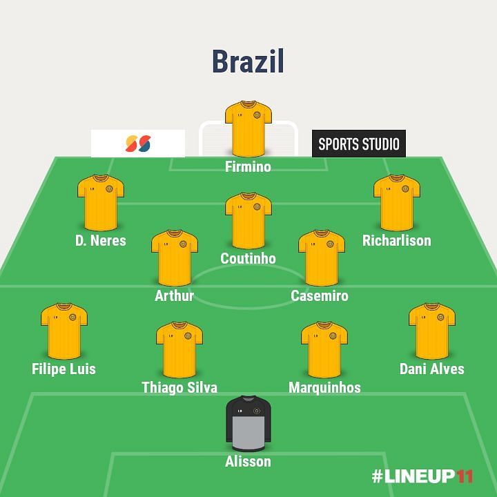 Although veteran Brazil manager Tite might have the luxury of playing Philippe Coutinho as an out-an-out replacement for Neymar in the offensive trio, he may deploy the Barcelona star in a No.10 role, playing David Neres and Richarlison on either side, with Roberto Firmino being the lone striker in a 4-2-3-1 fomation.